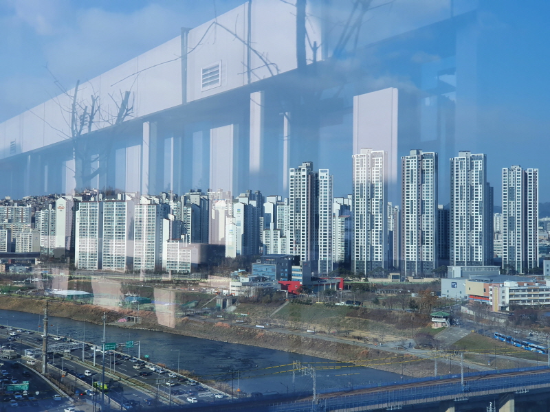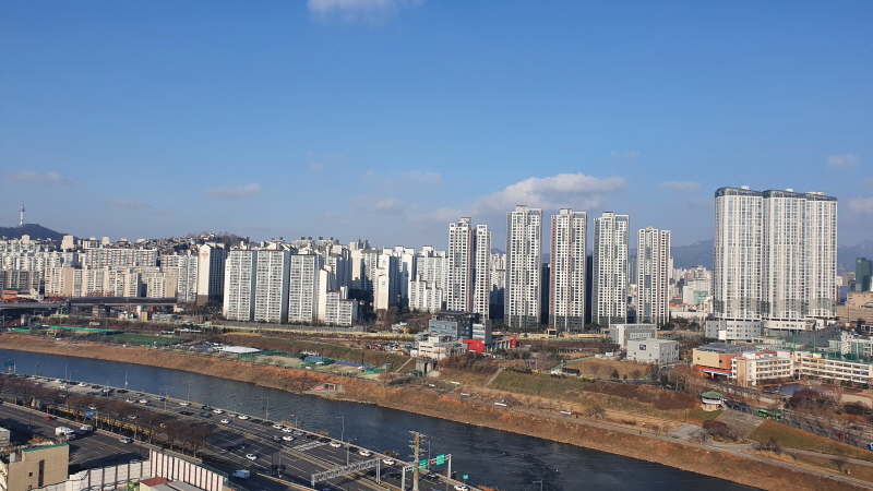 저 멀리 롯데월드타워까지 보인다. 앞쪽은 아파트가 있다. 이쪽은 준공업지역으로 주거지역과 공업지역이 혼재된 것이 단점이다.