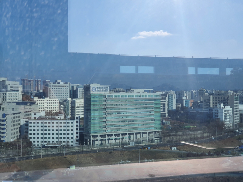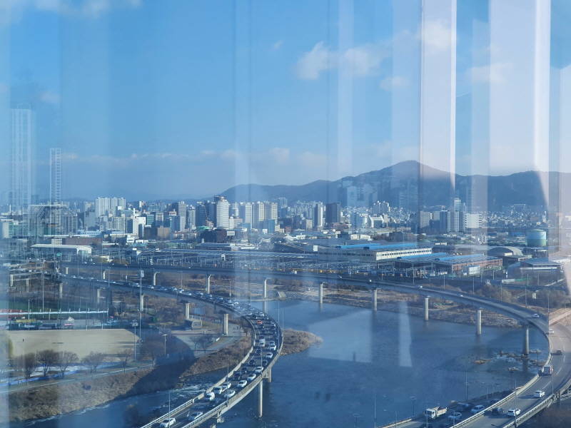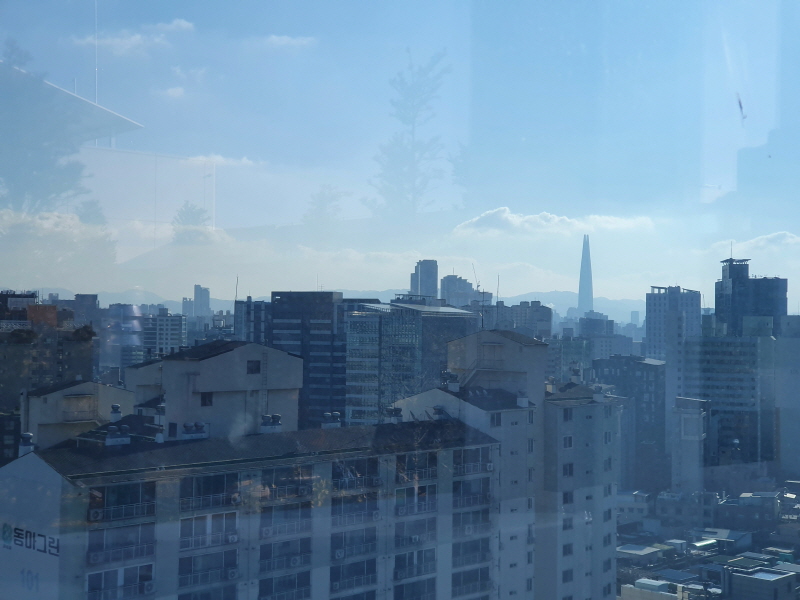 서울숲IT캐슬과 달리 더스페이스타워는 옥상 주변이 유리로 막혀 있었다. 안전 면에서는 더 낫지만 깔끔한 뷰가 안 보이는 것이 아쉬웠다.