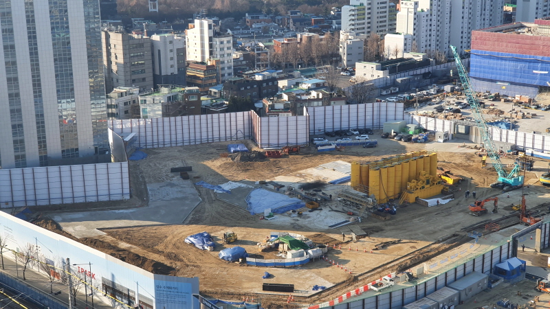 지하철이 지나가는 길 건너편으로 공사현장이 보였다. 지역주택조합으로 시작한 곳으로 알고 있는데, 다른 곳들과 달리 사업이 진행중인 곳이다.