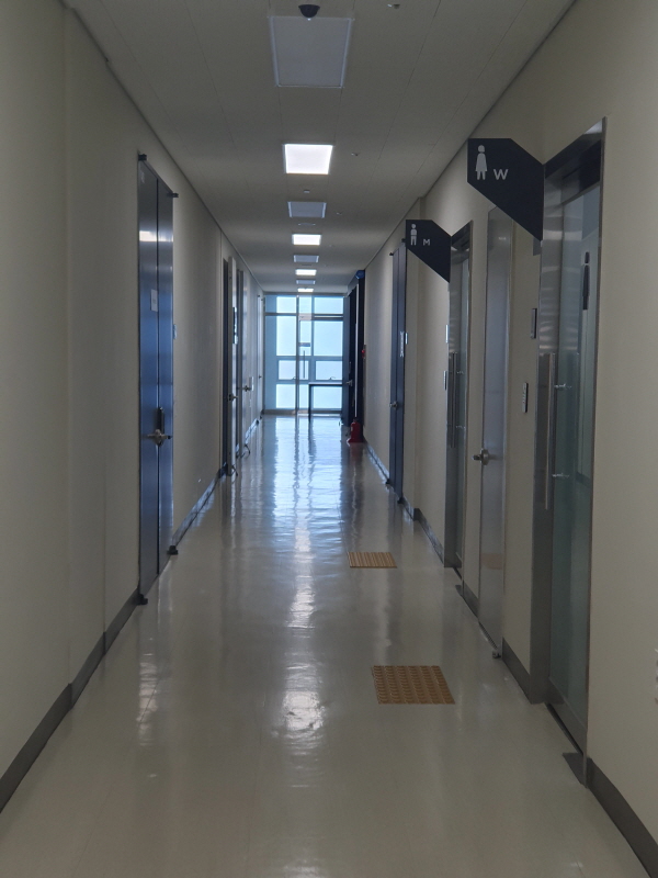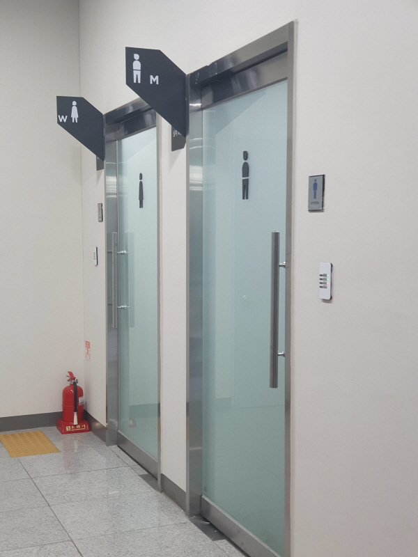 바깥 모습이긴 하지만 화장실도 깔끔하다. 이런 깔끔함도 업체들이 지식산업센터를 선호하는 이유 중 하나이다.
