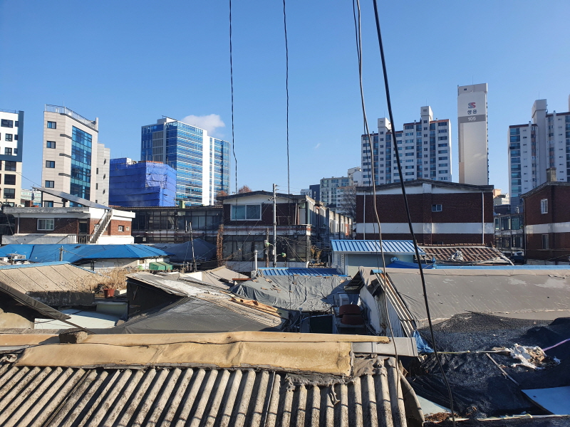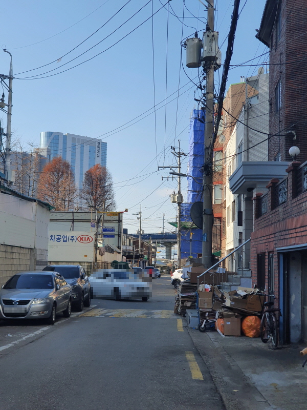 여기도 성수1구역에 포함되는 것 같은데, 저 앞쪽에 보이는 맨션/빌라들과 뚝섬역 사이의 노후된 주택들이다.