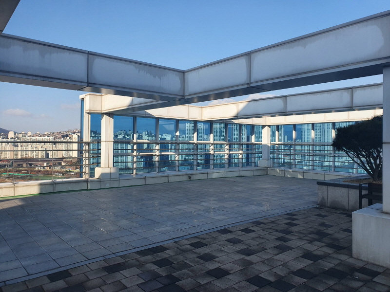 지식산업센터 옥상에는 정원 및 흡연공간이 있다. 상주업체의 직원들이 흡연을 하러 올라온다. 전망도 좋으니 잠시 휴식을 취할 겸 올라오면 좋겠는데, 계단에 금연이라고 적혀있음에도 계단에서 흡연을 하는 사람들도 있다.