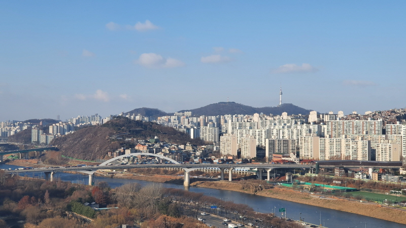 응봉산과 저 멀리 서울타워까지 보였다. 아파트들도 많다.