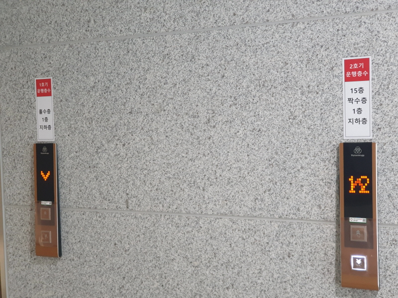 성수더스페이스타워의 승객용 엘리베이터는 2대였다. 하나는 홀수층, 하나는 짝수층.