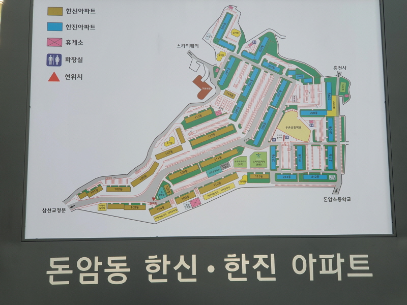 돈암동 한신한진 아파트라고 하지만, 노란색 부분은 한신아파트, 파란색 부분은 한진아파트로 구분된다. 대단지라서 그런지 1단지는 한신공영에서, 2~3단지는 한진건설에서 공사를 한 것 같다.