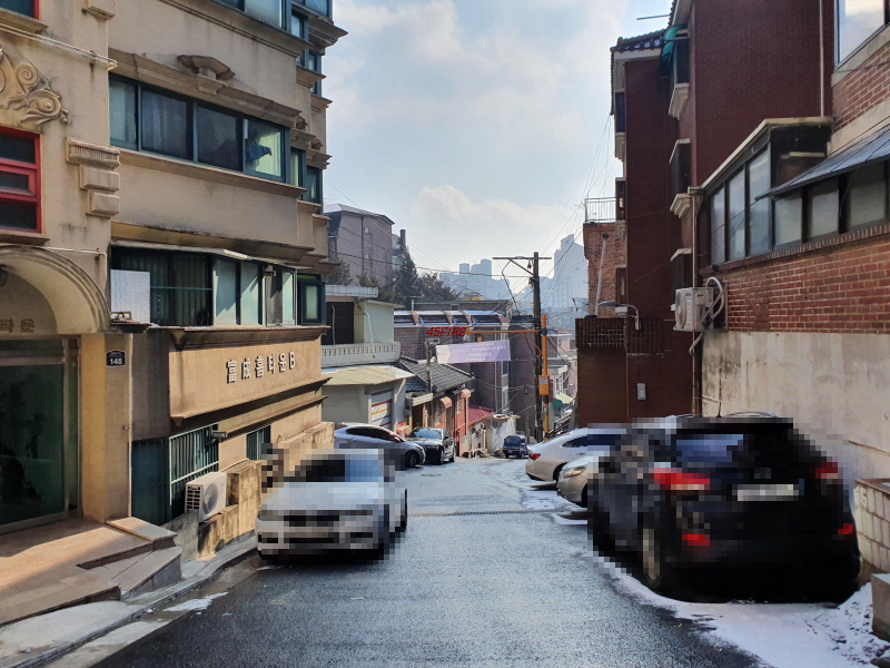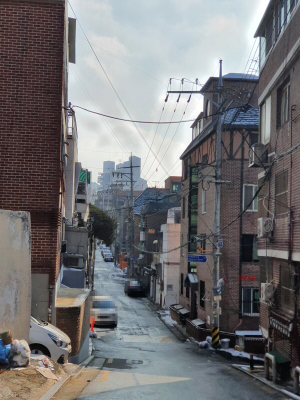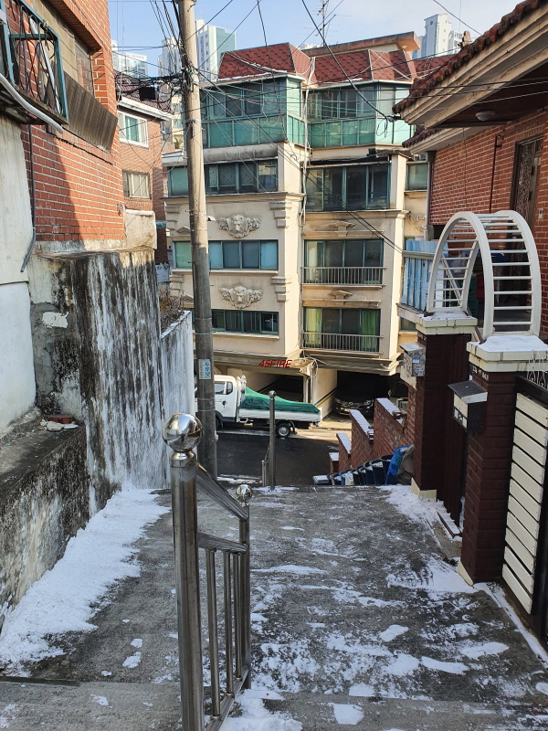 태양연립주택은 1996년에 준공된 건물이다. 총 11세대가 있다. 전체 대지면적은 127평이다. 경사를 따라 건축을 했는데, 나중에 철거를 하고 건축을 하기도 애매할 것 같았다.