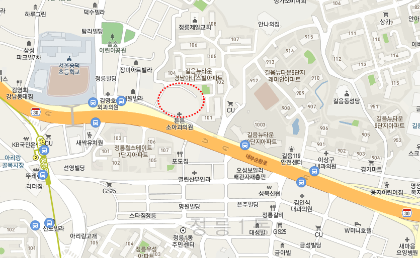정릉동은 규모가 큰 편이다. 우이신설선 정릉역, 북한산보국문역, 서경대학교, 국민대학교 등이 있는 곳이다.
