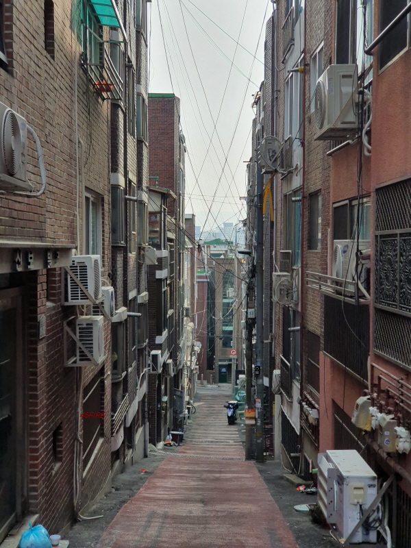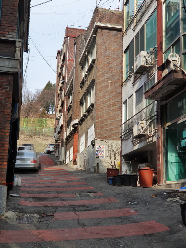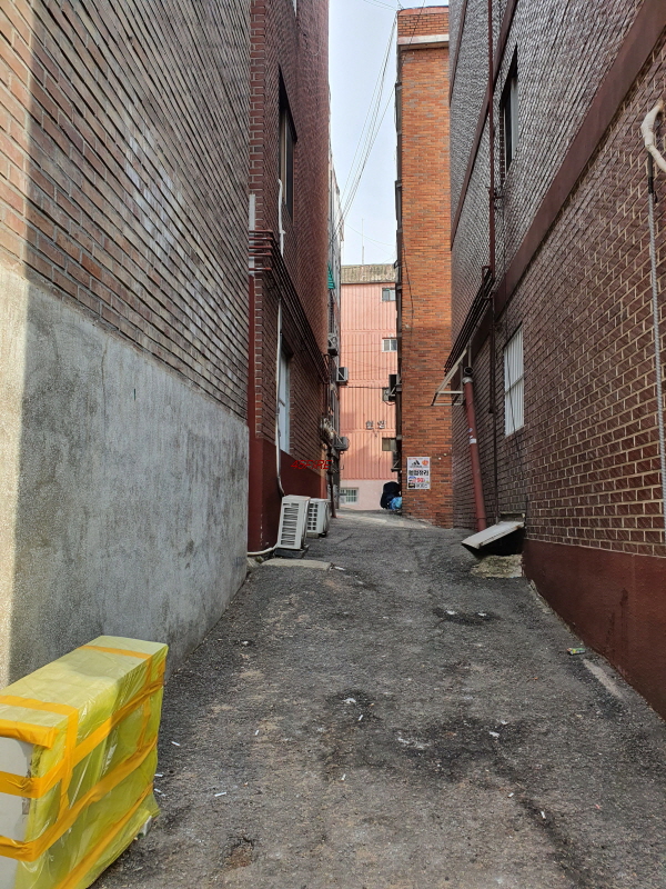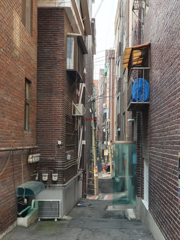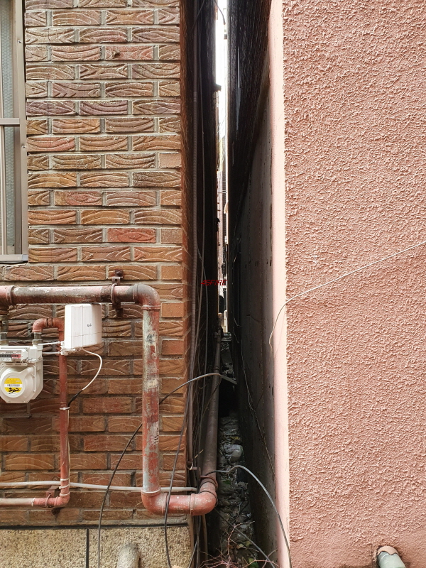 건물과 건물 사이의 간격이다. 사람 한 명도 들어가기 힘들어 보인다.
