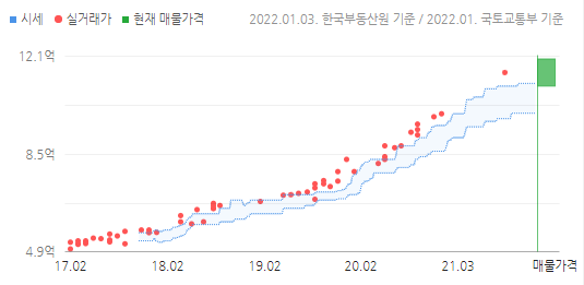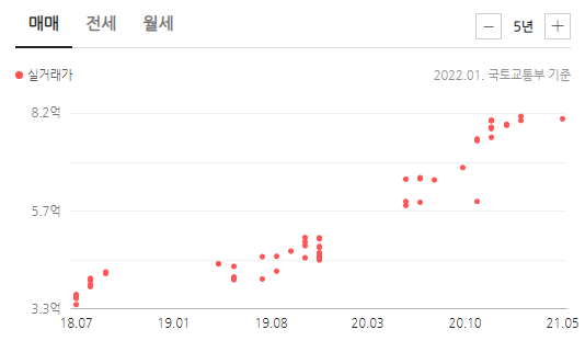 2018년 7월에 3억 중반대에 거래됐는데, 2021년 5월에 8억 400만원에 거래됐다.
