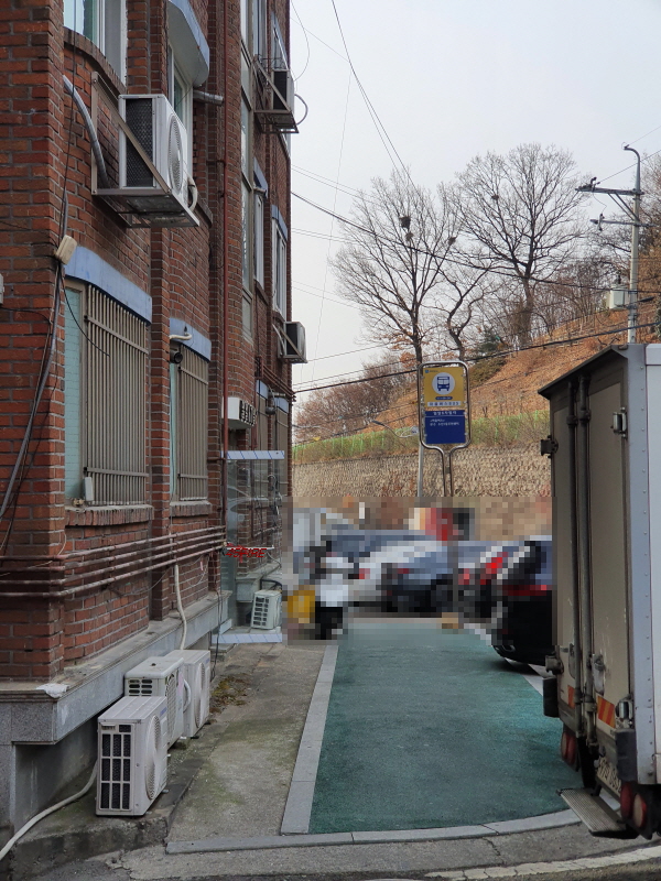 주차 공간이 따로 없으니 도로변에 차를 세워놨다. 주차선은 평행주차를 하도록 그려져 있었으나 더 많은 차를 주차하기 위해서 후면주차를 해놓았다.