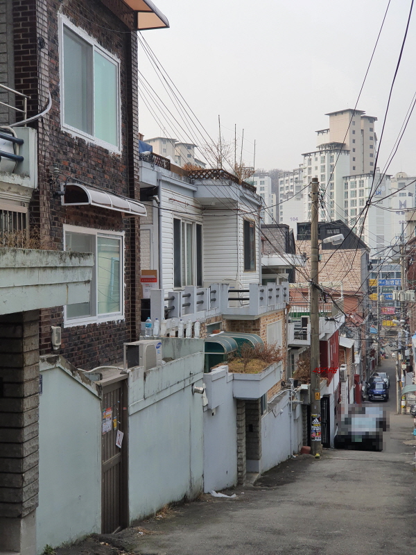 언덕 위쪽으로 올라가도 상황은 마찬가지였다. 총 10세대 정도 되는 빌라들이 많이 보였다. 이쪽 길은 그나마 차가 다닐 수 있을 정도로 폭이 넓은 편이었다.