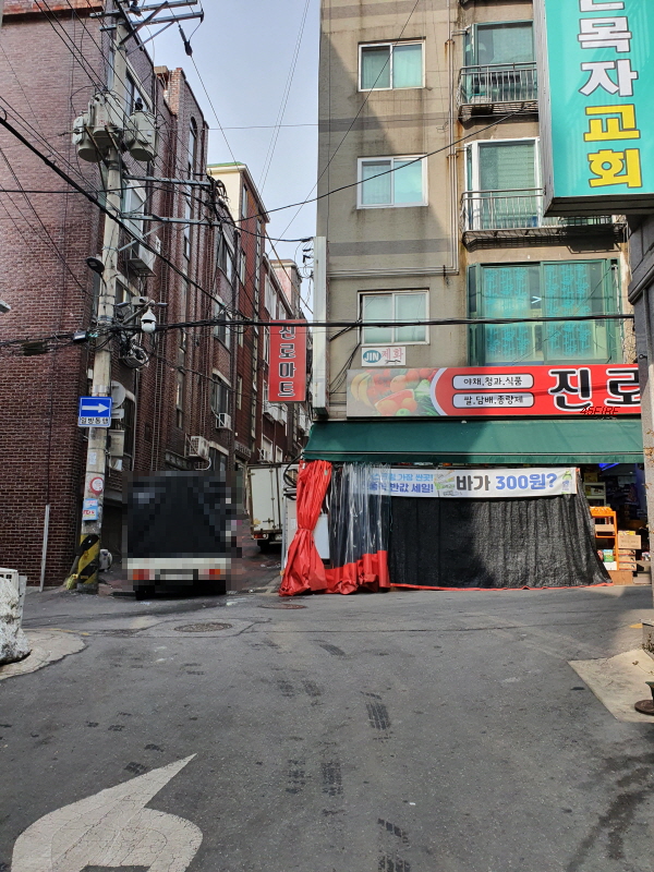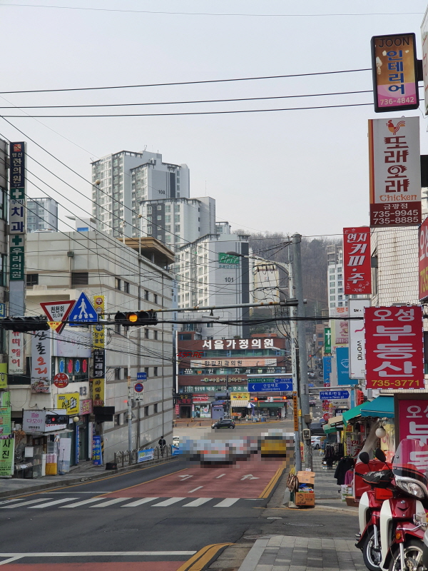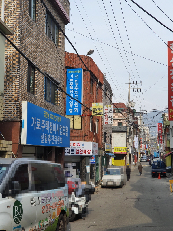 이 도로를 따라 상점들이 있었다. 가칭 은행1구역, 금광2동 재개발 추진위원회 사무실도 보였다.