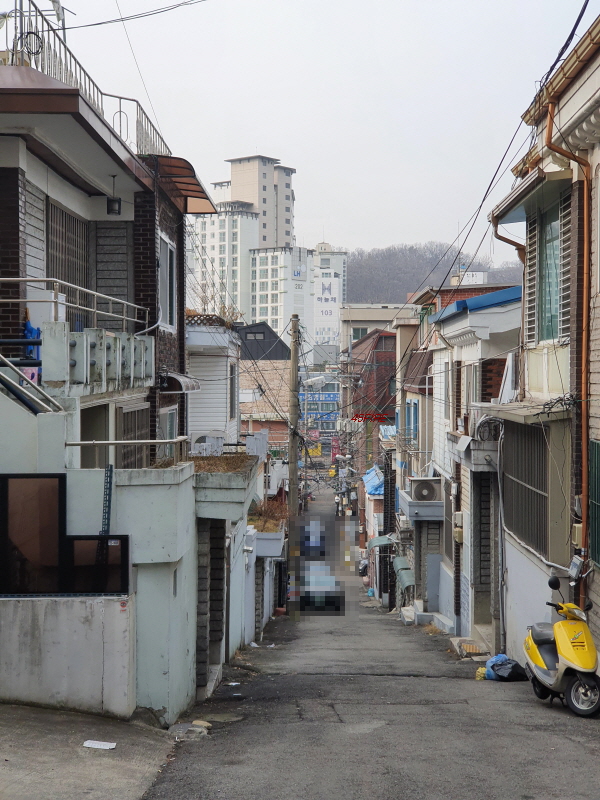 차가 다니기 어려워서 로드뷰로 확인할 수 없었던 골목의 모습이다. 간혹 단독주택도 보였지만 대부분 빌라들이었다. 지하1층, 지상4층으로 총 10세대였다.