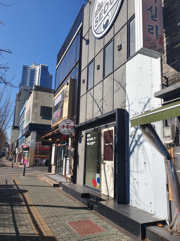 여기는 신용산역 북측3구역으로 지정된 곳이다. 한강로 벽산메가트리움 아파트와 한강대로 사이에 있는 소규모 상가들이다. 1955년, 1956년 건물로 나오는데 외부만 리모델링을 한 것 같다. 1층과 2층 통임대로 22평이 3000/350, 5000/450에 각각 나와 있다.