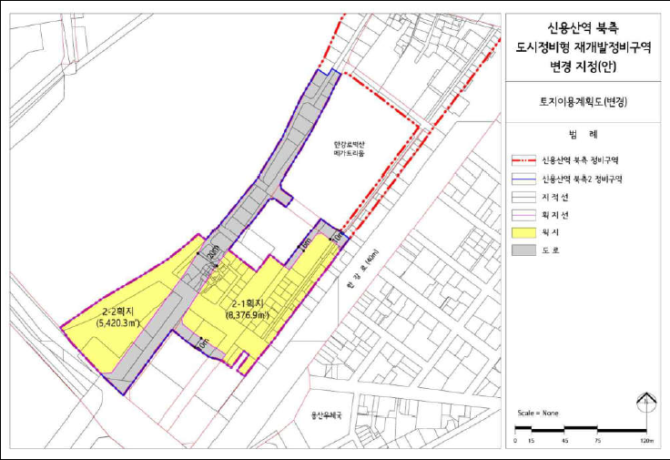 신용산역 북측 정비구역은 1구역, 2구역, 3구역으로 구역이 나누어져 있다.