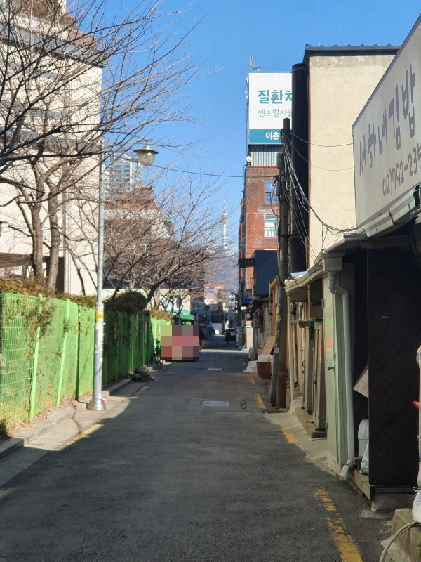 골목 끝으로 서울타워도 보인다.