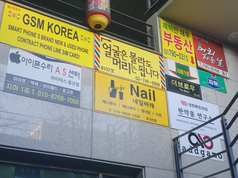 경매로 나온 오피스텔 지하 1층에는 부동산, 아이폰수리점, 네일샵, 미용실 등이 있었다.