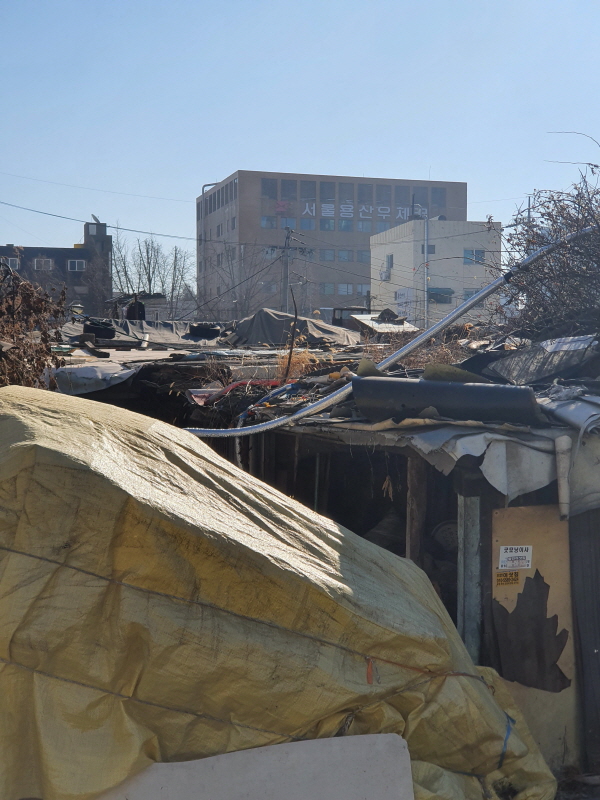 뒤로 벽산메가트리움 아파트가 보인다. 그 앞에 높은 건물은 오피스텔인데 북측2구역에서 제외된다.