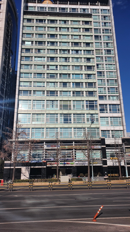 건물 뒤로 아모레퍼시픽과 LS 건물이 보인다.