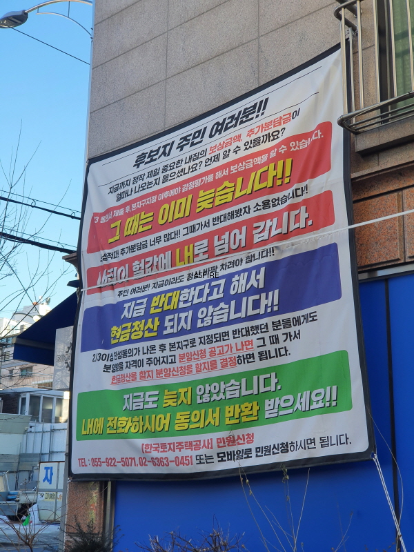 대부분이 공공주도 재개발에 반대하는 현수막이었는데, 여기는 요건 달성을 축하하는 현수막이 있었다.