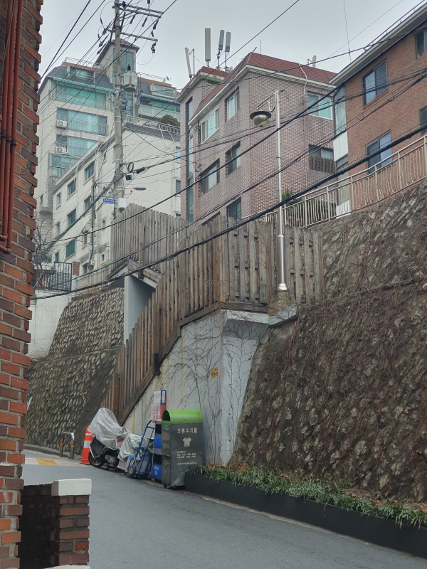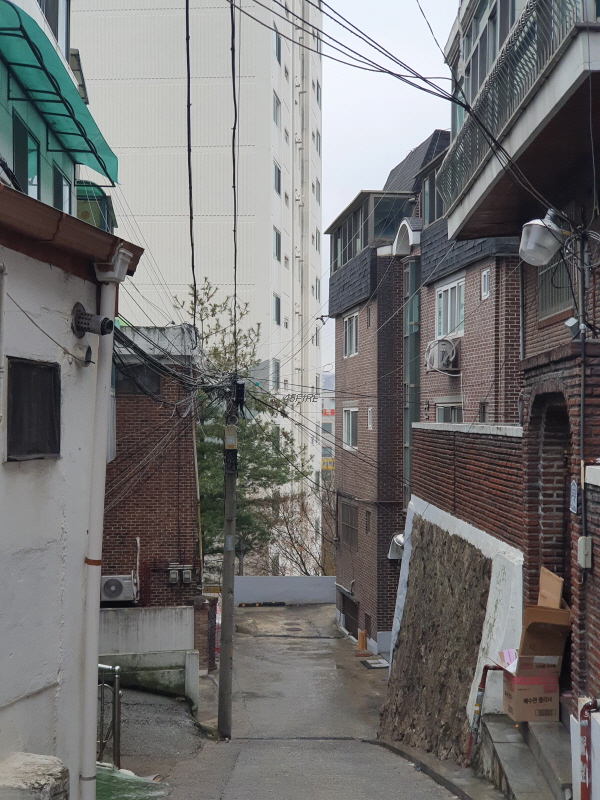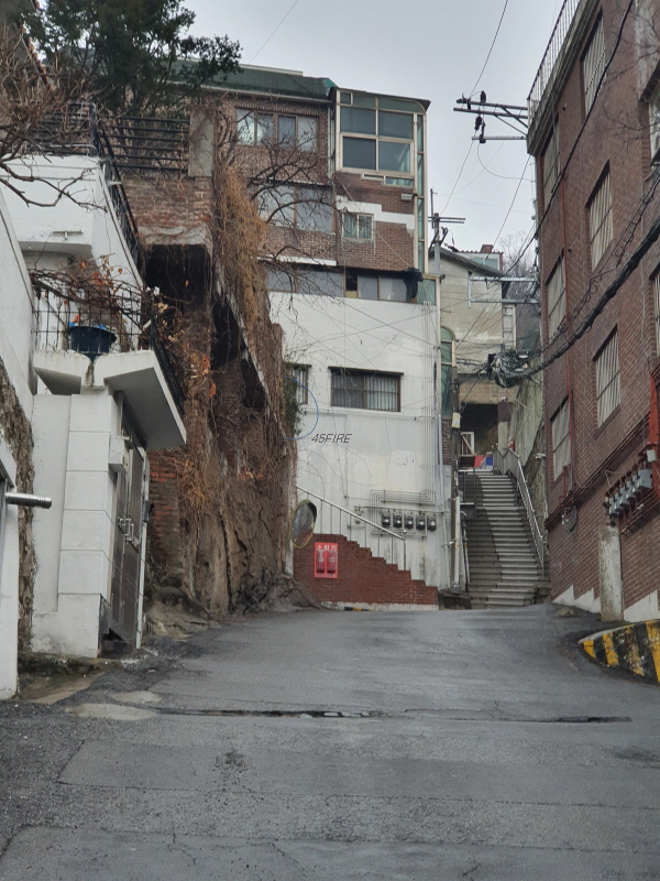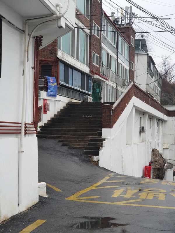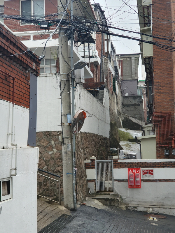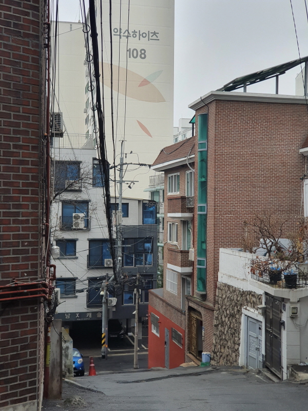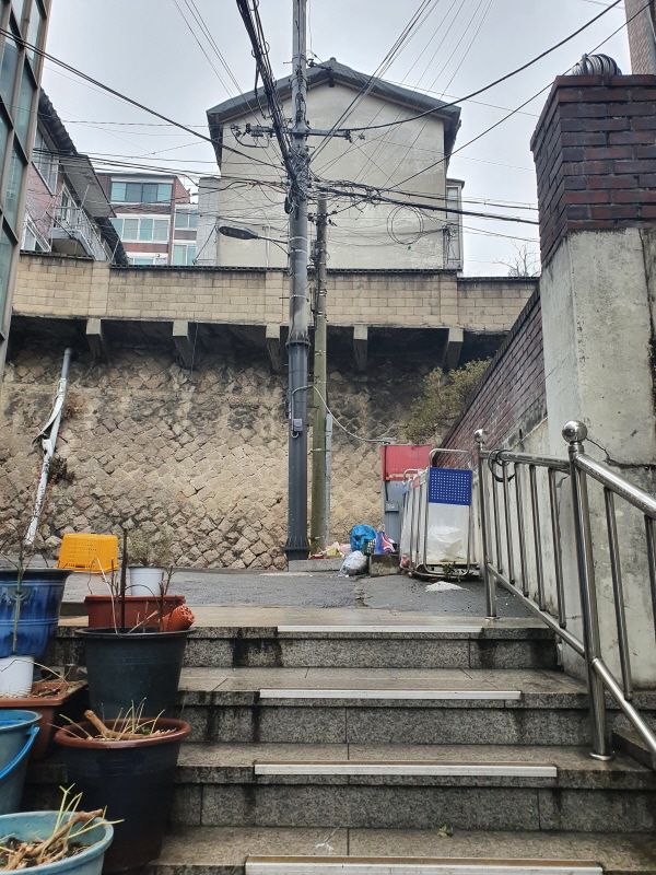 어느 빌라 바로 앞이 약수하이츠 아파트와의 경계였다. 높이 차이가 느껴질지 모르겠다.