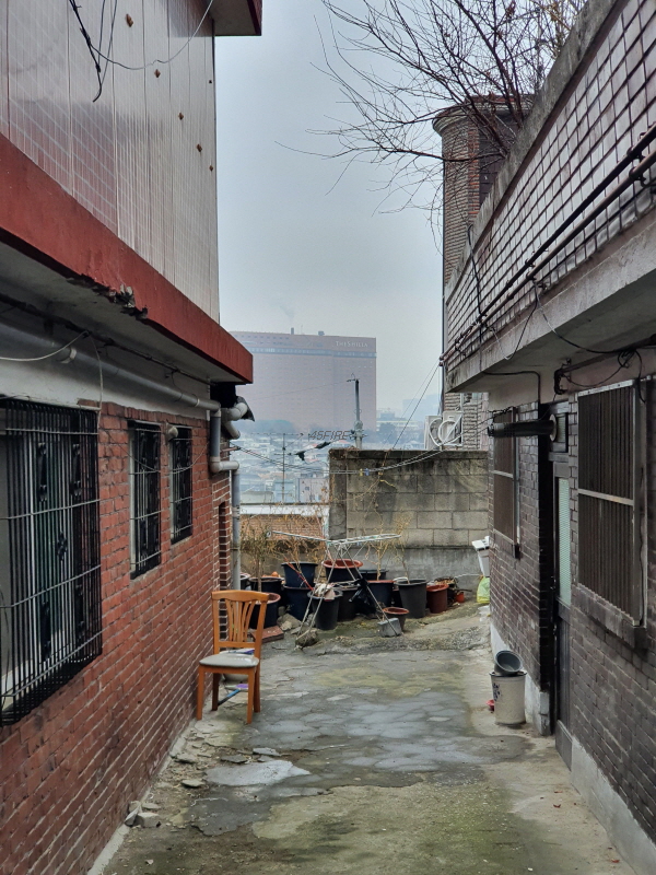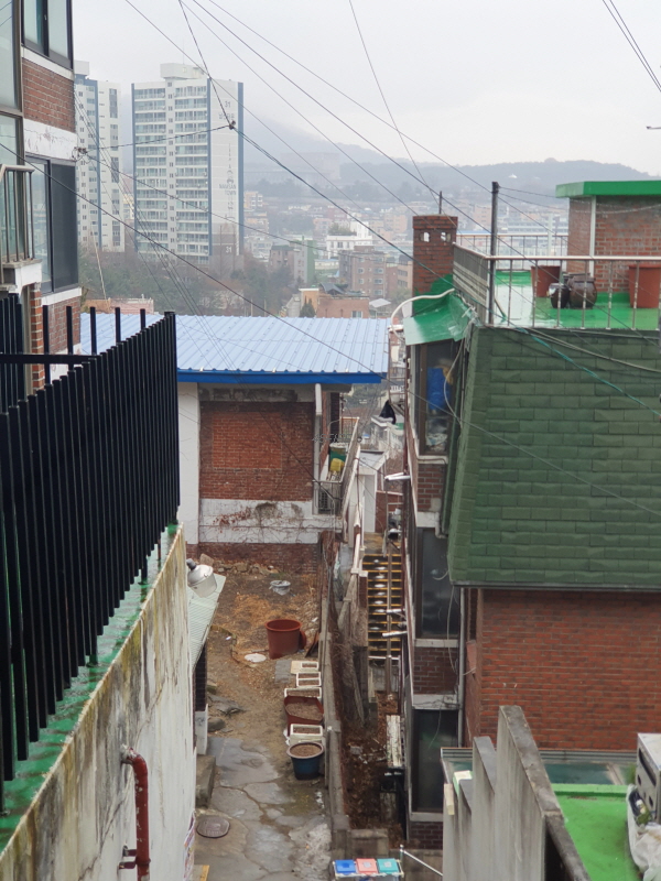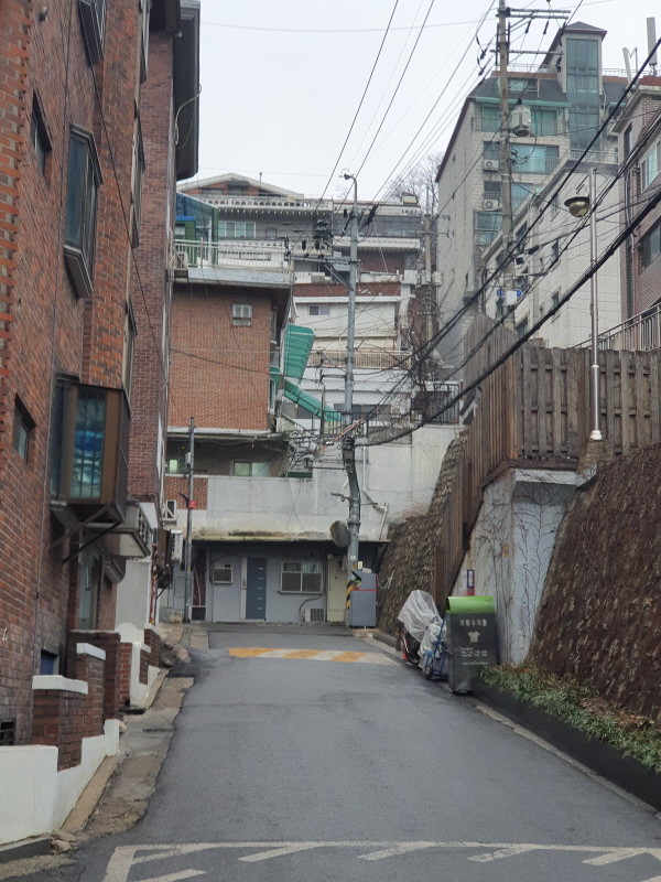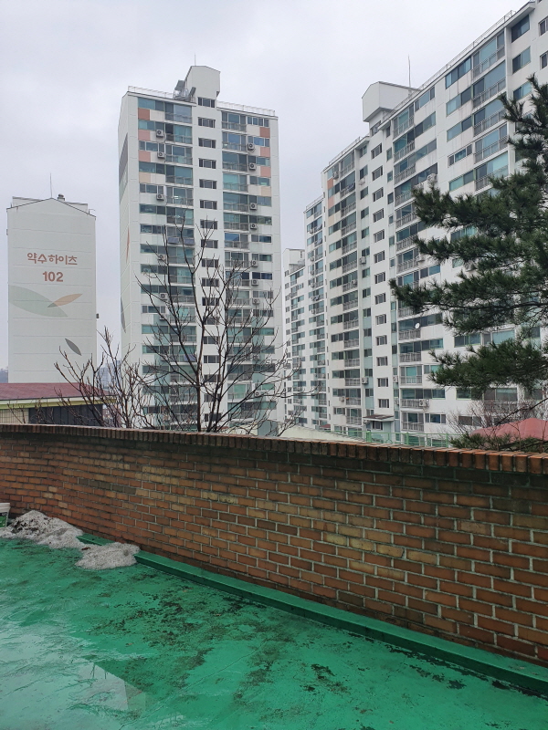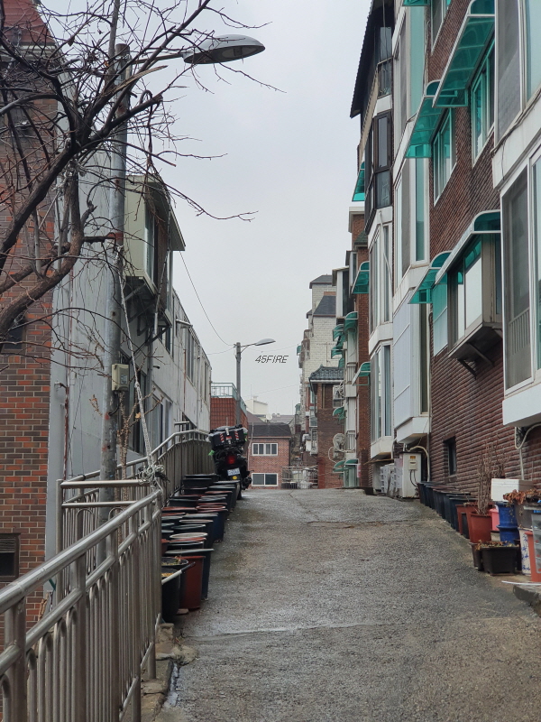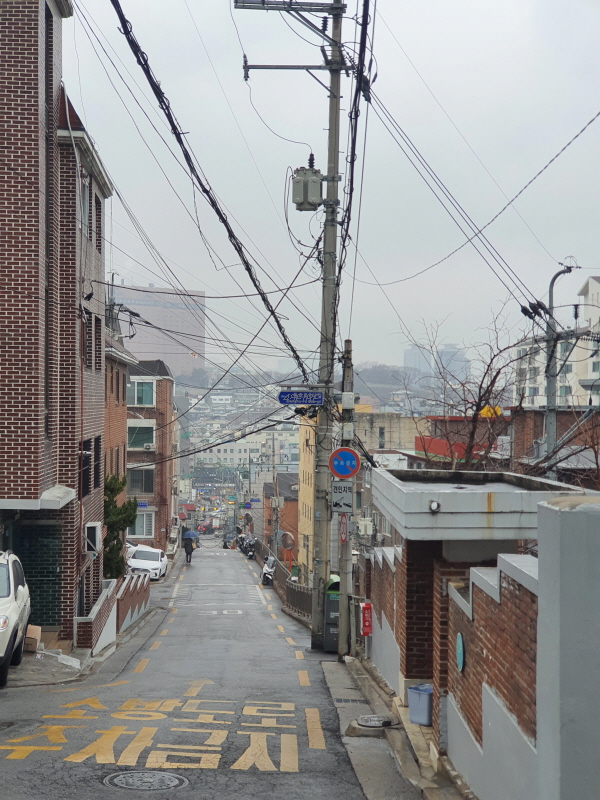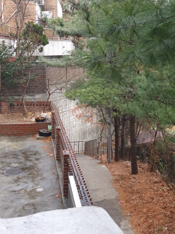 어느 빌라 바로 앞이 약수하이츠 아파트와의 경계였다. 높이 차이가 느껴질지 모르겠다.