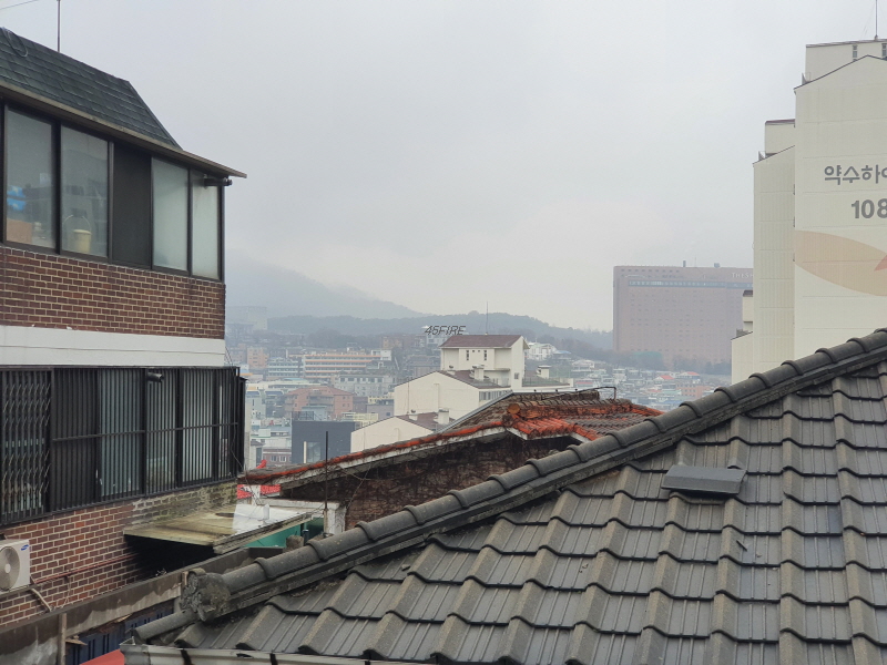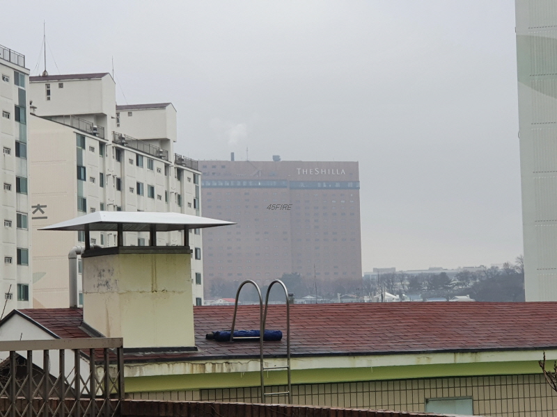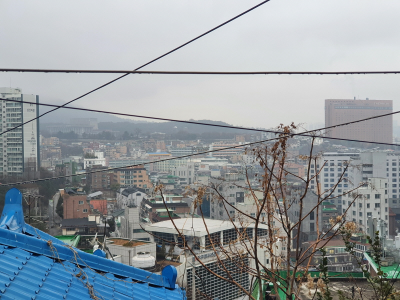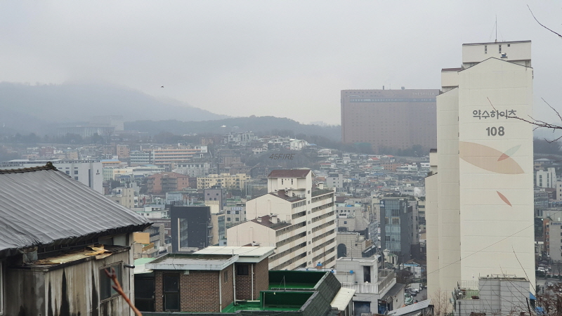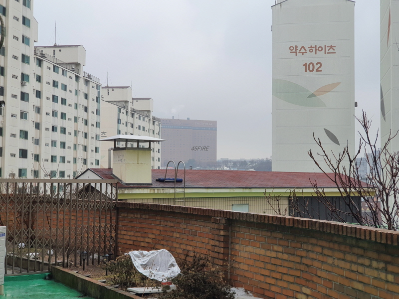 신라호텔이 보이는게 신기해서 확대해서 찍어봤다. 약수역 인근의 지대가 약수하이츠아파트보다 훨씬 높다는 것도 알 수 있다. 약수하이츠 아파트를 지을 때 산을 깎고 지었던 것일까.