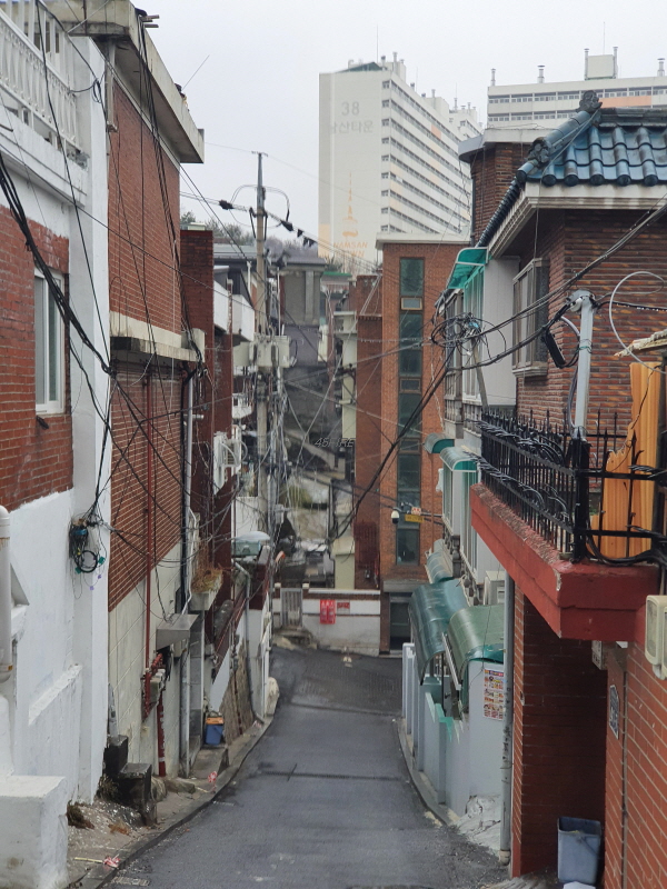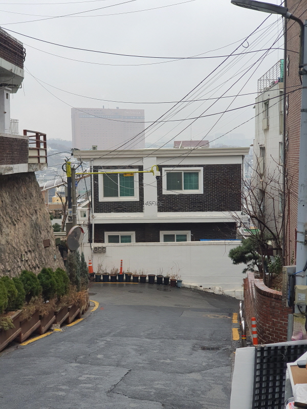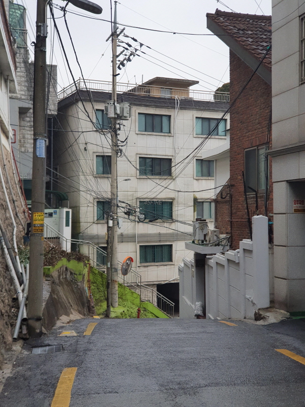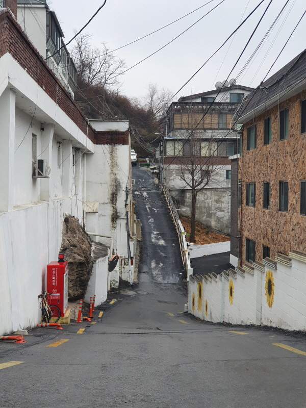 간혹 이렇게 신축 빌라도 보였다. 아래로 내려가는 경사도 상당하다.