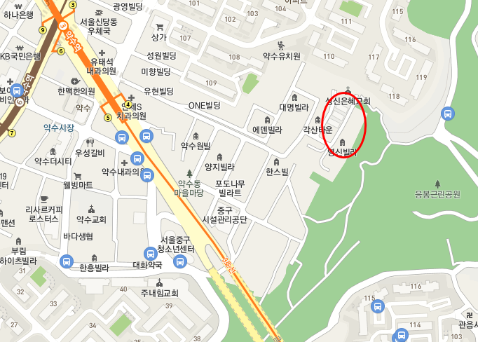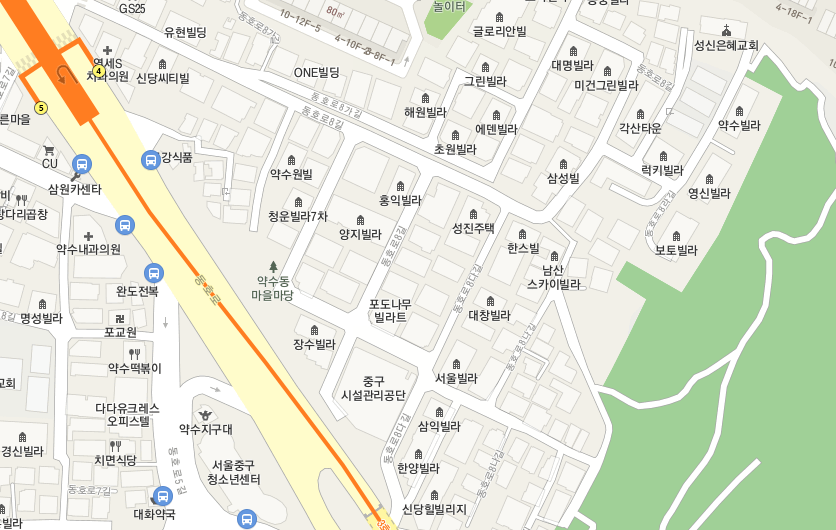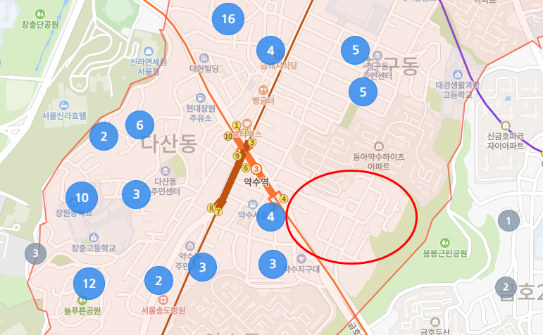 이쪽 건물들은 '약수역 인근'에 포함되지 않는다. 왜 일부분만 남겨놨는지 모르겠다.