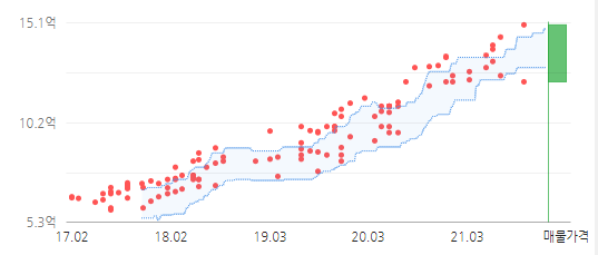 동아약수하이츠아파트는 규모가 작아보였는데 그래도 2282세대나 된다. 32평형이 2017년 2월에는 6.5억 정도에 거래됐다. 가장 최근으로는 2021년 11월에 최저 12.2억, 최고 15억에 거래된 것으로 나온다. 현재 나와있는 매물은 12억 초반부터 15억까지 있다.