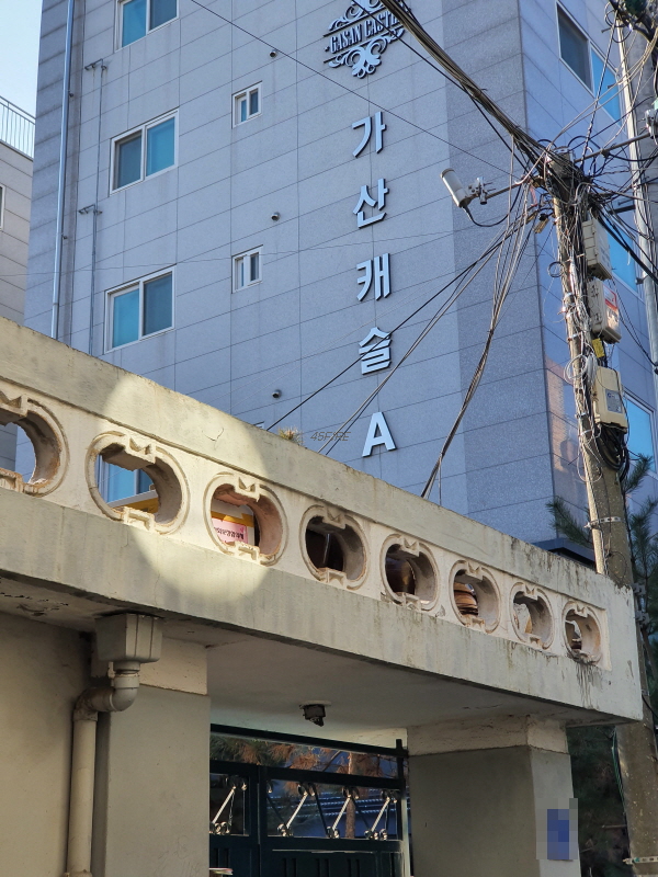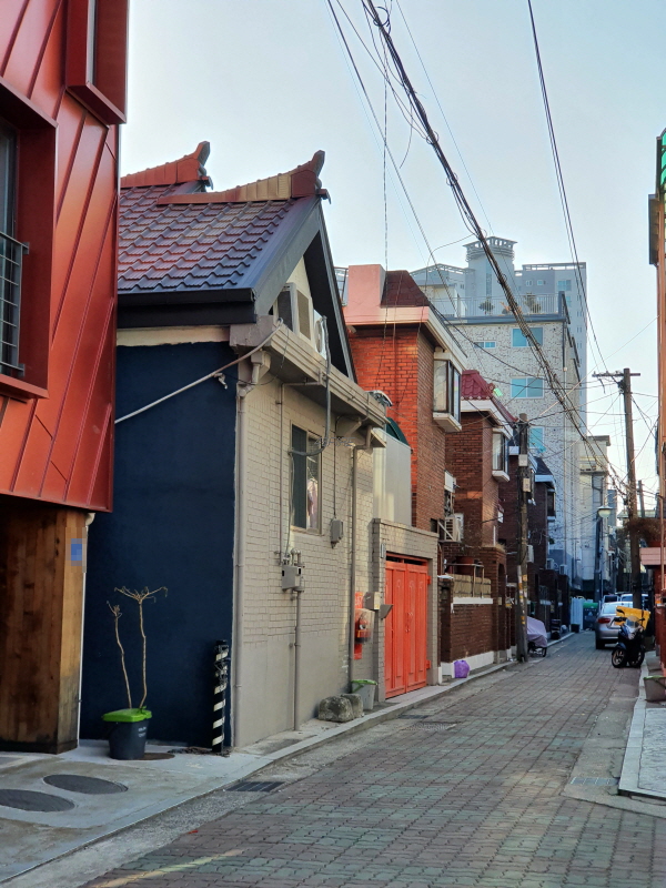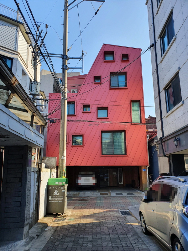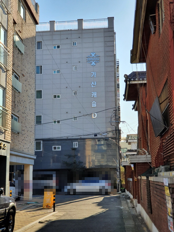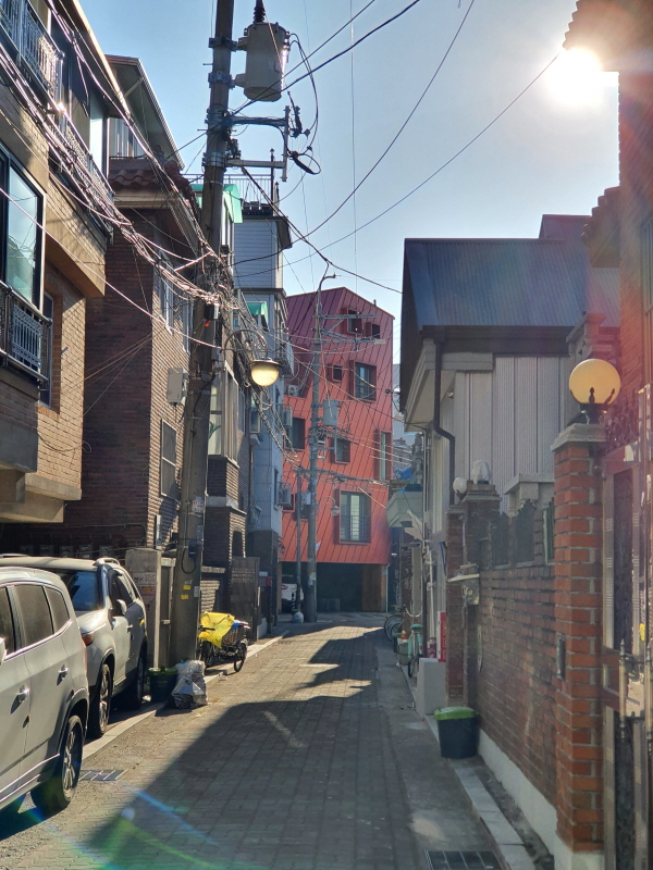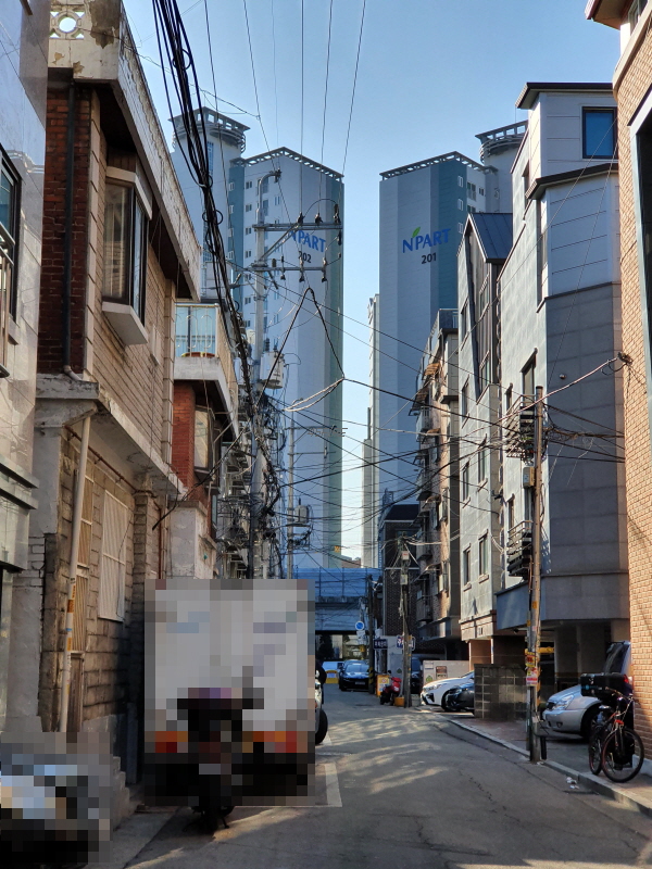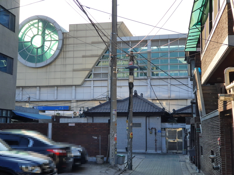 골목 안쪽으로 들어와서 본 모습인데, 건물 뒤쪽은 4차선 도로에 접할 것이다.