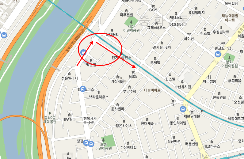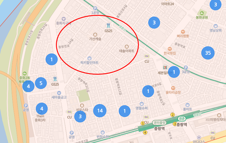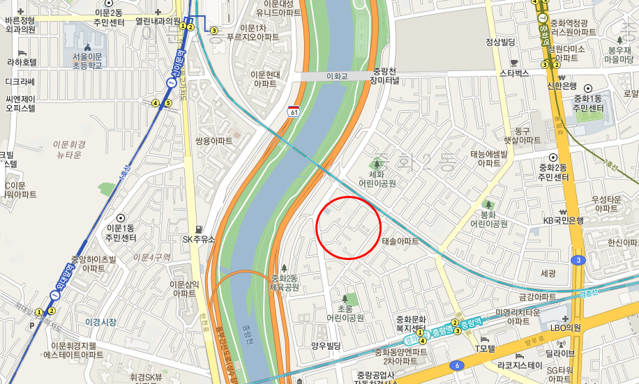 여기는 '중랑역 인근'의 왼쪽 윗부분이다.