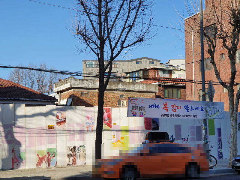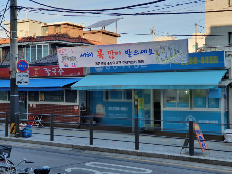 여기도 추친위원회 현수막이 보였다. 중랑역 바로 앞에 있는 것을 제외하고, 공공복합 중랑역세권 추진위원회 현수막이 주로 구역 경계에서 보였다.