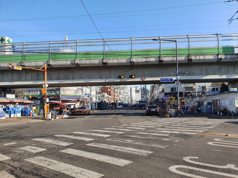 중랑역 인근의 왼쪽 부분을 도로 건너편에서 바라본 모습이다.