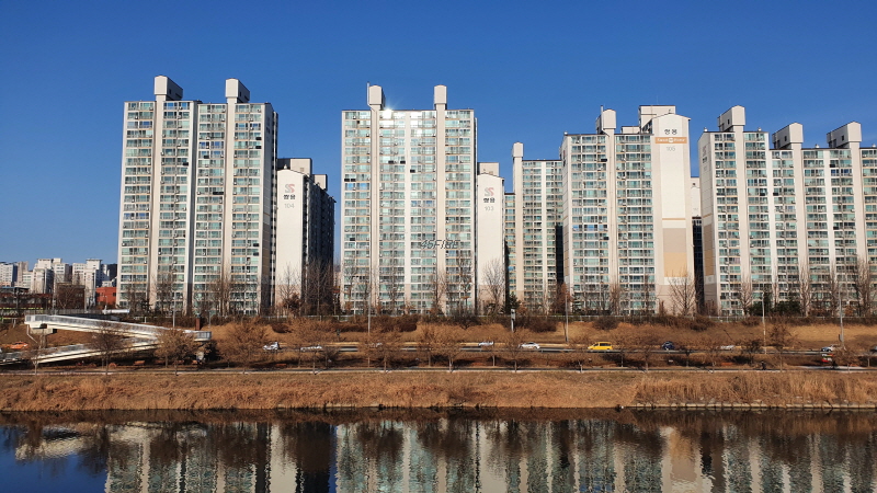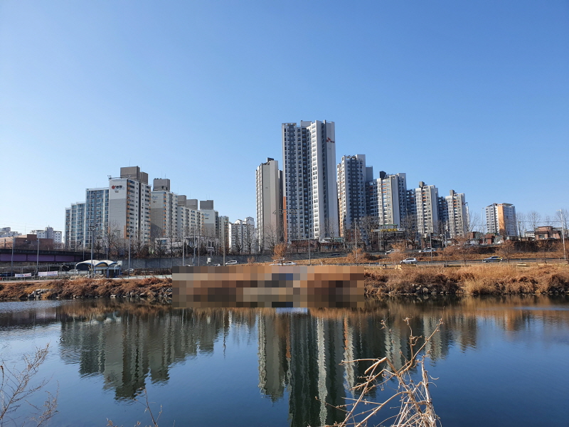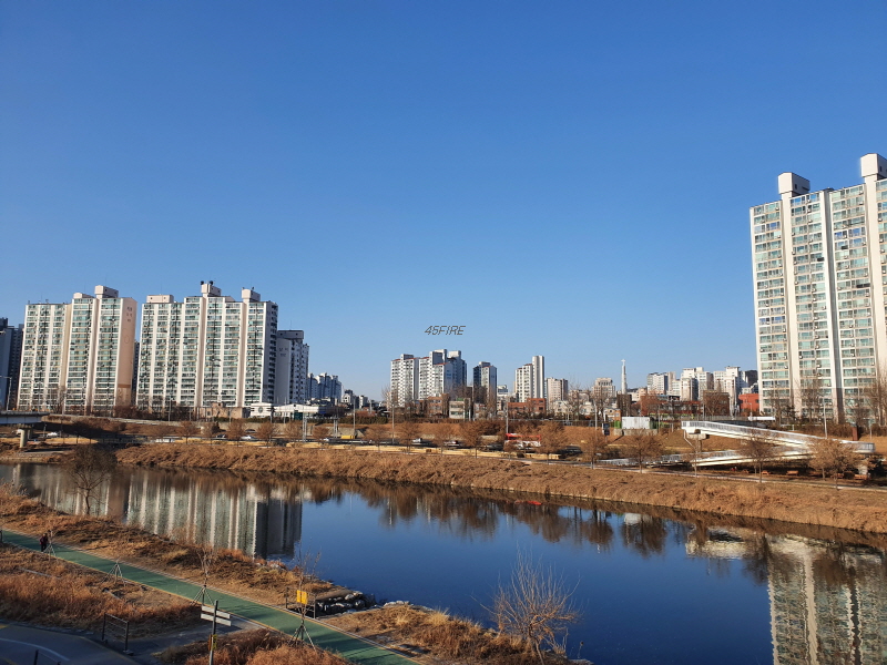 중랑천 건너편 아파트들의 모습이다.