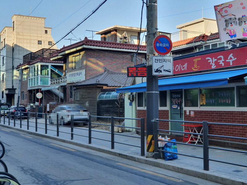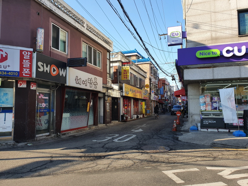 CU편의점부터는 도로를 따라 구역이 설정되어 경계가 깔끔했는데, 아래쪽으로 내려올 수록 경계가 불분명했다.