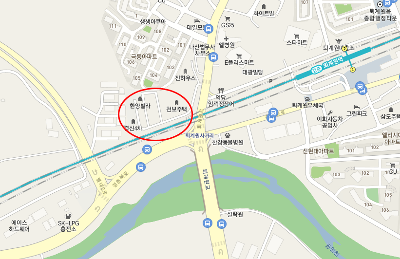 위 건물을 포함하여 뒤쪽으로 퇴계원7구역이 있다.