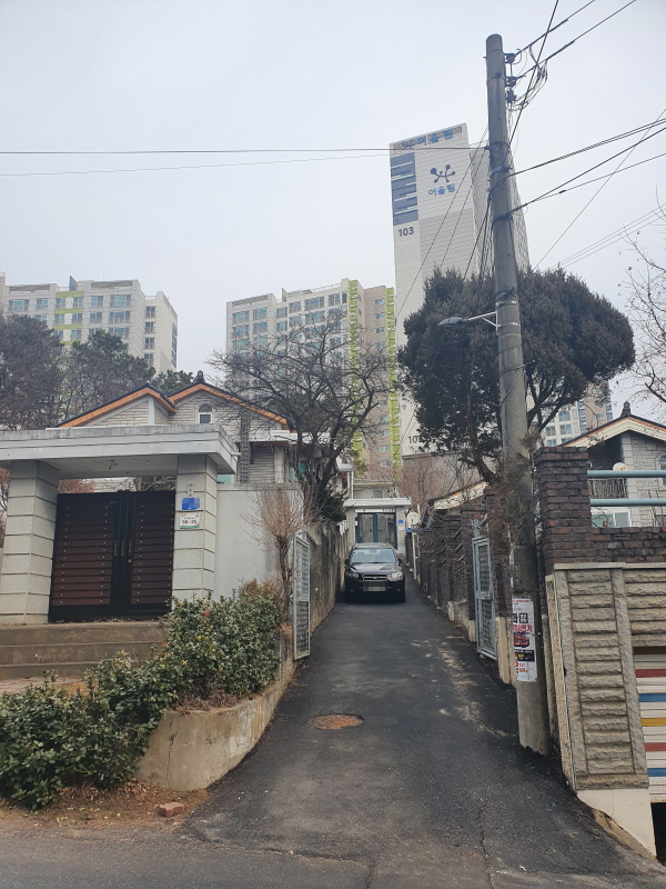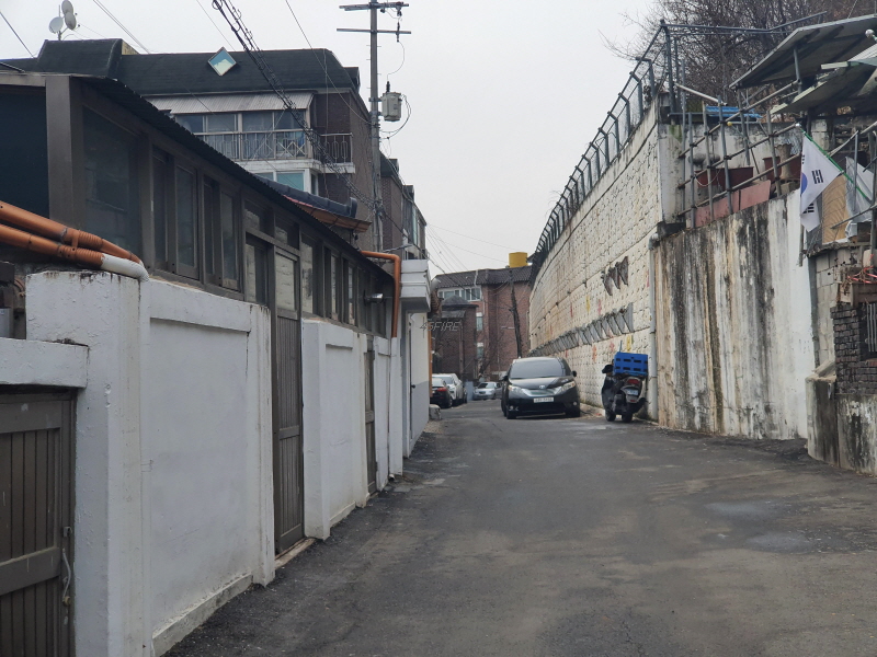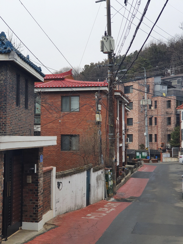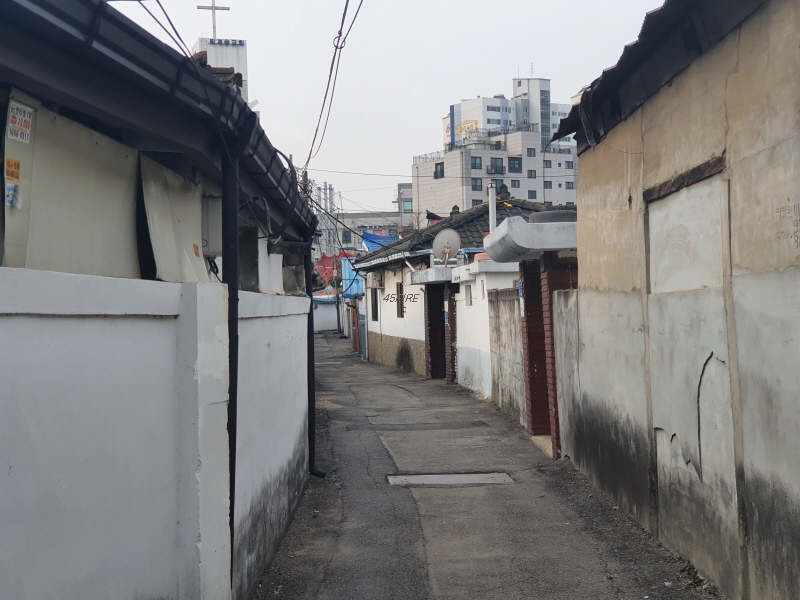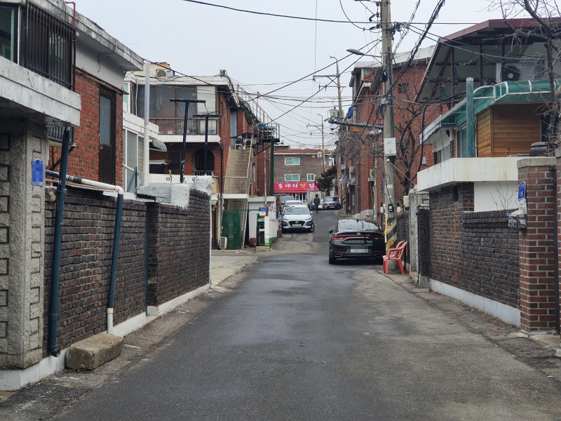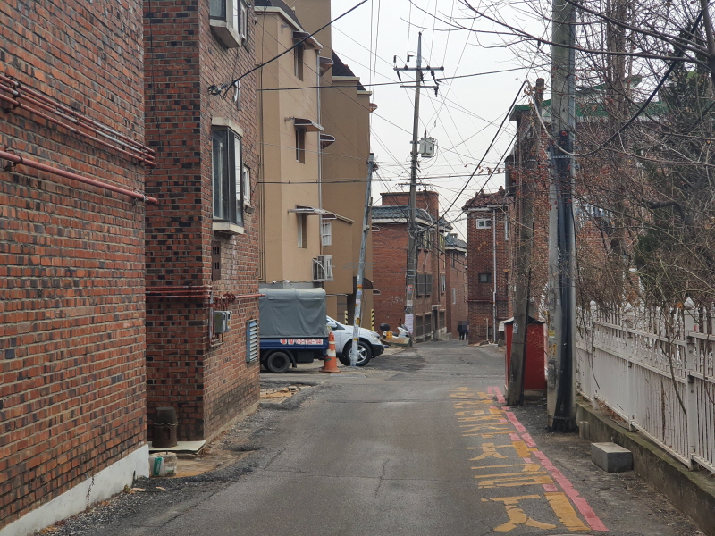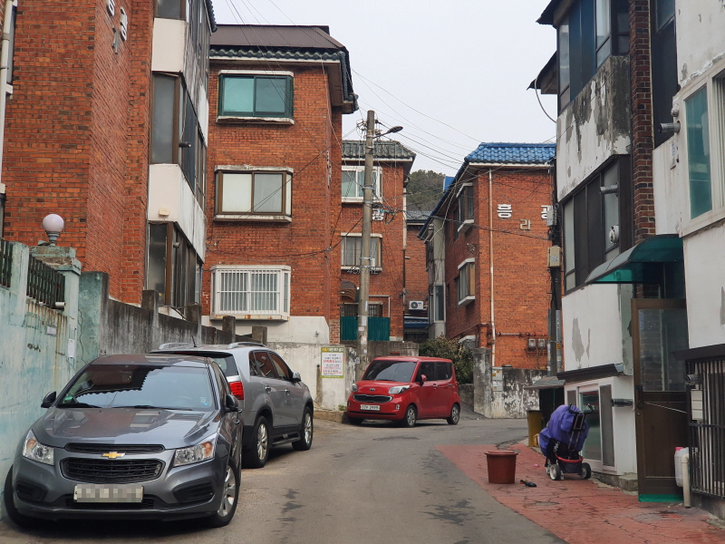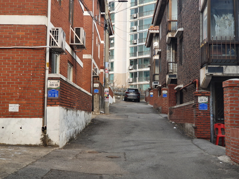 이 도로를 중심으로 왼쪽은 신축 빌라들이 있었고, 오른쪽은 앞쪽의 사진과 같은 노후 주택들이 있었다.