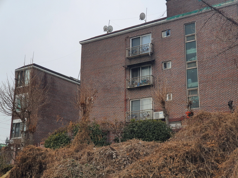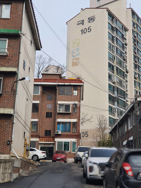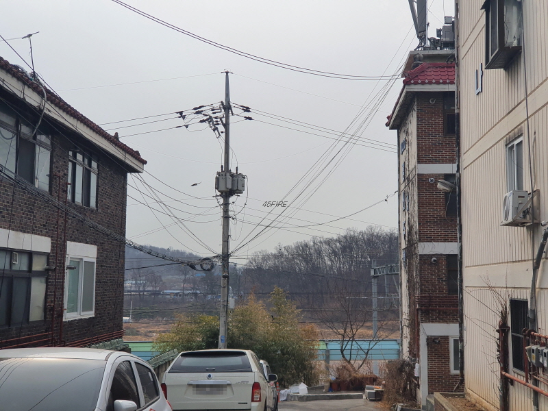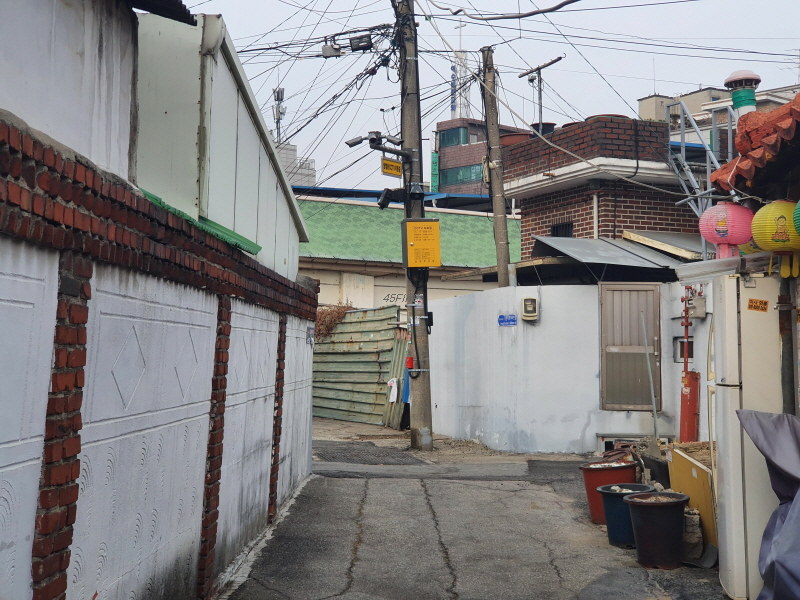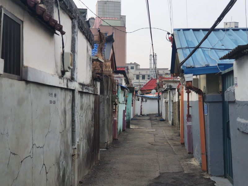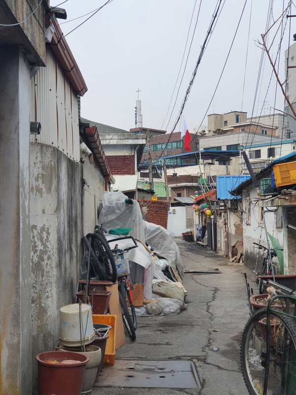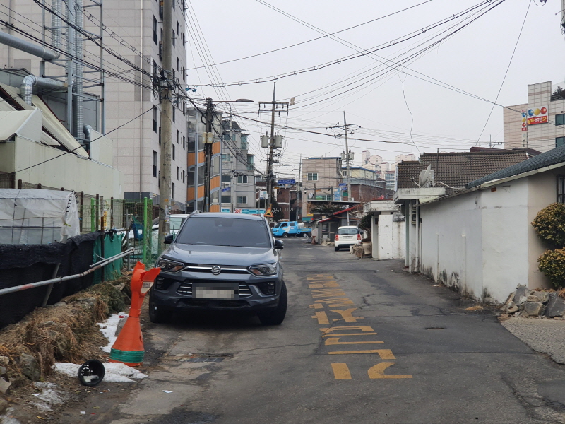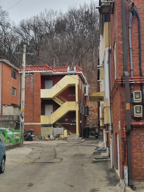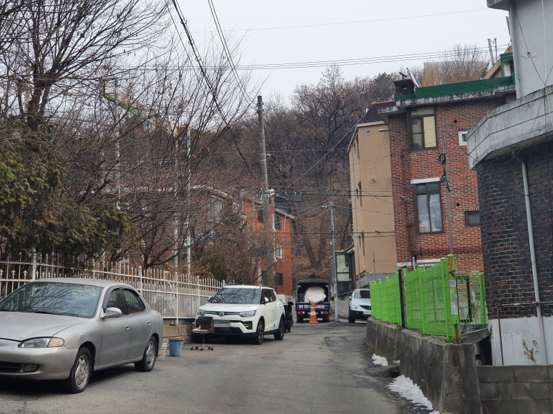 이 도로를 중심으로 왼쪽은 신축 빌라들이 있었고, 오른쪽은 앞쪽의 사진과 같은 노후 주택들이 있었다.
