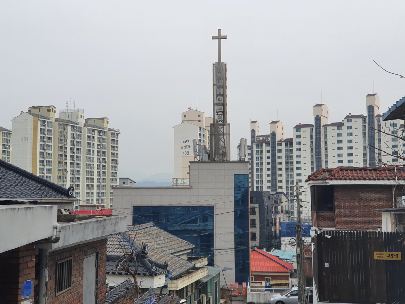 건너편으로 아파트들이 보였다.