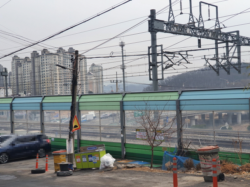 저 앞으로 보이는 아파트가 퇴계원 힐스테이트 아파트이다. 퇴계원7구역 바로 남쪽으로 경춘선이 지나간다. 임장을 하는 동안 기차가 지나가지 않아서 소음이 어느 정도인지 모르겠는데, 아무튼 이것도 단점이다.