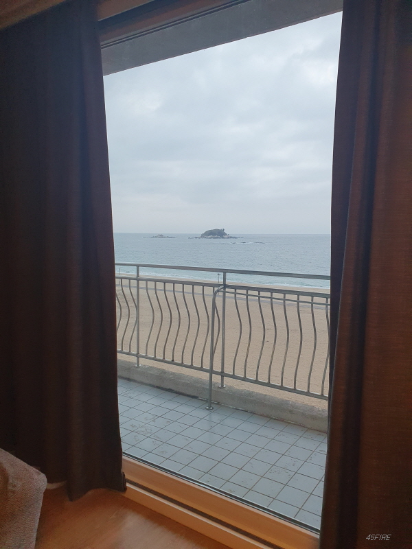 스튜디오는 원룸형이다. 홈페이지상 원룸1/화장실1로 나와있다. 침대에 누워서도 바다를 볼 수 있는 점이 마음에 들었다. 스튜디오도 오션뷰와 마운틴뷰가 있는데, 마운틴뷰는 이용을 안 해봐서 어떤지 모르겠다. 15시부터 체크인인데, 늦게 도착해서 바다를 바라봤을 때 건물 왼쪽 부분으로 배정을 받았다. 건물 오른쪽 부분이 뷰가 더 좋다.
