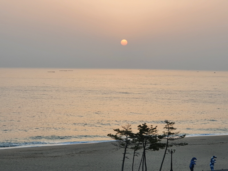 켄싱턴리조트 설악비치에 반한 이유가 일출 때문이다. 처음 와서 봤던 일출이 환상적이었다. 이번에는 일출을 볼 생각이 별로 없었는데, 그냥 가기 아쉽기도 하고 날씨를 확인하니까 다행히 '맑음'이라서 일출을 보기로 했다. 아직 봄이라 일출시간도 부담스럽지 않았다.