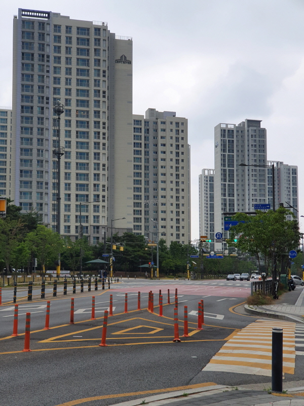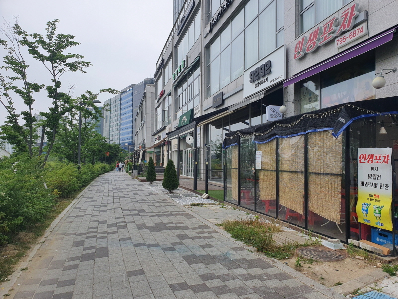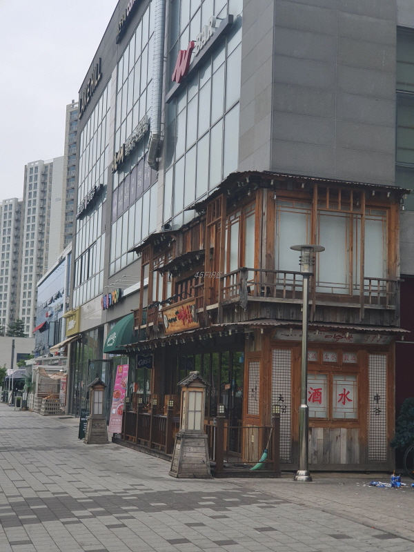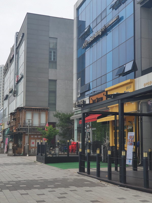 저 앞쪽이 지금까지 지나온 상가들이 있던 곳이다. 그 뒤로는 더 높은 상가 건물들이 있다.