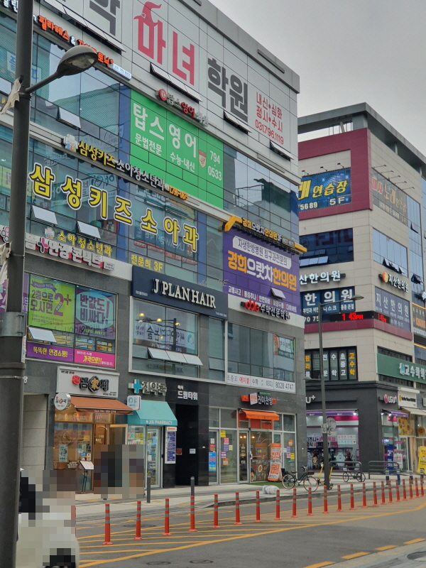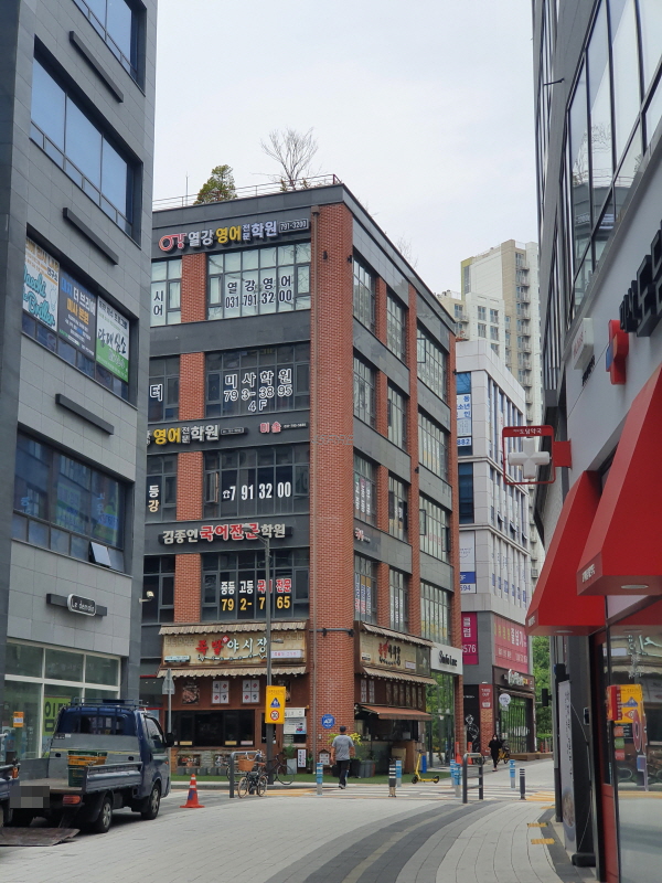 저 건너편이 망월동 학원가이다. 학원들만 있는 것은 아니고 병원, 음식점, 마트 등 다양한 업종이 있었다.