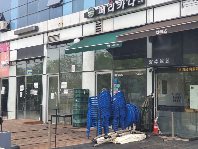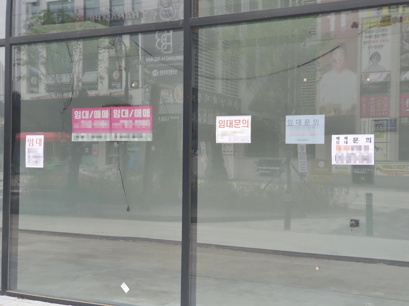위층은 학원들이 들어와 있는데 1층은 공실이었다. 두 사진이 각각 다른 건물이다.