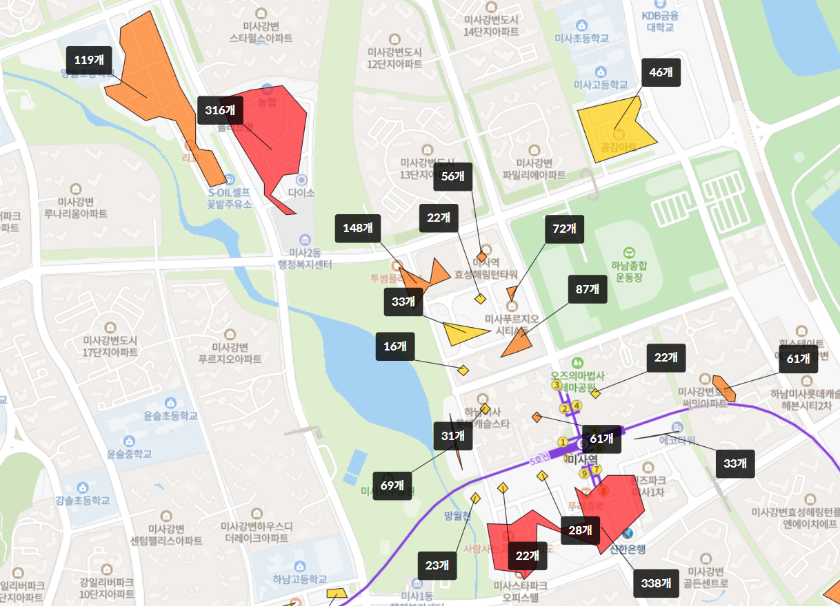 여기서 잠깐 미사역을 주변 임대 시세를 적어보겠다.