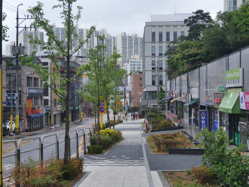 아파트 주변을 도는 산책로도 보였는데 시간상 아파트 단지 내를 관통하는 도로를 따라 정문으로 갔다.