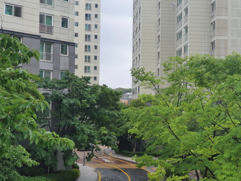 어느 아파트 단지나 마찬가지인데 저층은 나무 때문에 시야가 가린다. 사생활이 보장되기도 하지만 다소 답답해 보였다.