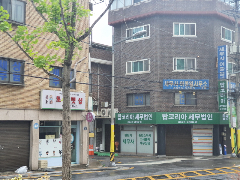 삼선SK뷰 아파트 앞을 몇 번 지나갔는데 관심이 없어서 몰랐던 점이 있었다. 아파트 바로 옆에 성북세무서가 있다는 것인데, 그래서 그런지 삼선SK뷰 상가에도 세무법인 사무실가 있었고 그 맞은옆으로도 위 사진처럼 세무 관련 사무실이 보였다.